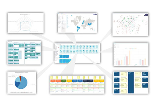 Isı ve yoğunluk haritaları (heatmaps), raporlar, şemalar (charts) ve grafikler dahil olmak üzere içeriği farklı perspektiflere göre oluşturulmuş dinamik görünümler altında inceleyin, düzenleyin ve analiz edin. Sözkonusu görünümler BT ve iş birimlerinin katılımındaki karma ekipleri destekler, farklı paydaşların farklı ihtiyaçlarını karşılayacak şekilde uyarlanabilir.