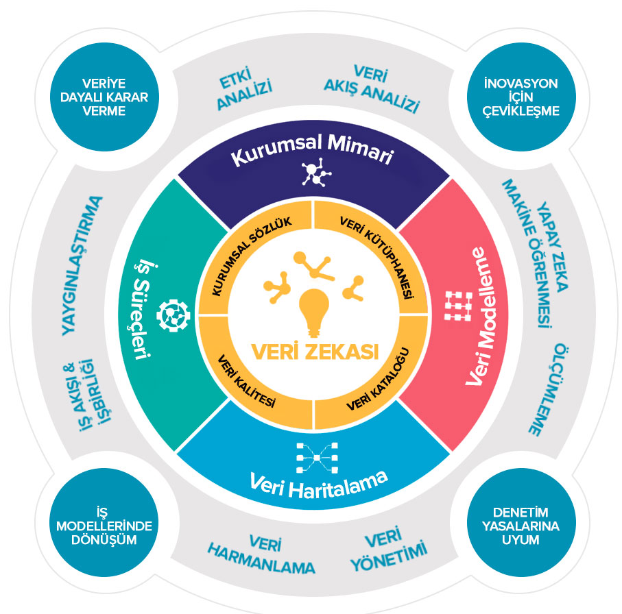 Artık dünya adeta verinin etrafında dönüyor, bu sebeple de veri varlıklarının yönetimi bilgi teknolojileri sınırını çoktan aştı ve herkesin işi haline geldi. Kurumlarda risk yönetimi, yasal mevzuatlara uyum, inovasyon, çevik iş dönüşümü gibi girişimleri ele almanın en akıllı yolu veri varlıklarını entegre, etkin ve iyi yönetebilmekten geçiyor.